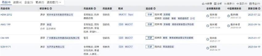 MUC17靶向药物在研格局(图片来源:药智网数据企业版-全球药物分析系统)